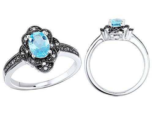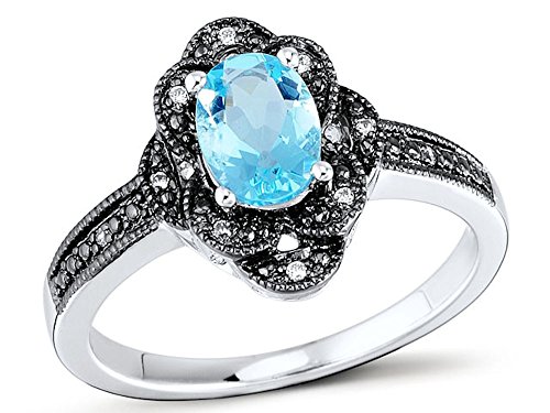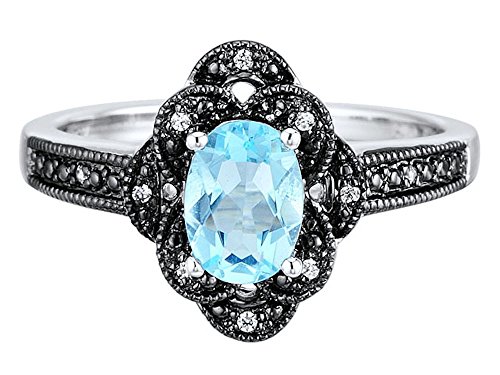 -. Feature : Beautiful Vintage Style Aquamarine and Diamond Ring / Natural Aquamarine 7x5MM (treated) / 10 Round Diamond Accents HI Color, I2-I3 Clarity / Milgrain Edge / Rhodium Plated Sterling Silver