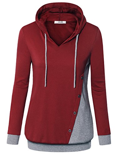 -. Feature : ★★★【ATTENTION: No good cheap goods. We haven't authorized any other seller to sell our items. Please make sure Sold by Vivilli and Fulfilled by Amazon】★★★Pull on closure / Hoodies Sweatshirts with Decorative Buttons/Drawstring Hoodies / Pullover Styling / V Neck Long Sleeve / Color Block Hoodies/ Casual Sweatshirts for Women /Hooded Sweatshirts / The Flexible Drawstring Could Adjust The Hood, Fashion Cool and Cute. Hooded Shirts Adds Sport and Casual Feel.Its Unique Design makes it such a timeless chic / Color Block Hooded Pullover Sweatshirt,The Grey Band at the Bottom Provides a Good Fashion Break/ V Meck with the Cute Bronze Button,Create a Slim Visual / Garment Care: Machine Washable (Recommend wash in laundry bags.) / Hand wash cold / Hang Dry / Do not bleach, Suitable for daily ,office, shopping, outdoor, sports and other recreational occasions, pairs perfectly with jeans, leggings, boots,It can be taken as the outerwear or the undershirt