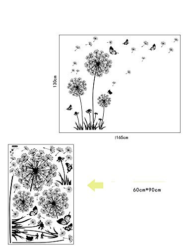 -. Title : Amaonm® Removable Diy Black Dandelion Butterfly Wall Stickers PVC Home Art Decoration Mural Wall Decal for Bedroom Sitting Bathroom Kitchen Bathroom Room Sofa Tv Background