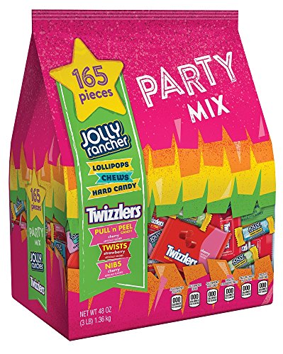 -. Feature : Celebrate in style this year with this fabulously festive Party Mix! / Assortment includes Jolly Rancher Fruit Chews, Twizzlers Nibs Cherry, Twizzlers Strawberry Twists, Jolly Rancher Lollipops, Twizzlers Pull 'N' Peel Candy, and Jolly Rancher Hard Candy / Individually wrapped candies, perfect for sharing / Three pounds of sweet treats, great for filling party candy bowls and piñatas / Includes One 165-piece bag of Party Mix Snack Size Assortment