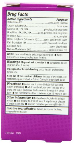 -. Binding : Health and Beauty -. Brand : Natra-Bio -. Department : Health and Beauty>Health and Wellness -. EAN : 7315681606452 -. Feature : Provides natural, homeopathic relief / All natural ingredients / Made in the USA -. IsAdultProduct : 0 -. IsAutographed : 0 -. IsMemorabilia : 0 -. Label : NatraBio -. LegalDisclaimer : Actual product packaging and materials may contain more and different information than what is shown on our website. We recommend that you do not rely solely on the information presented and that you always read labels, warnings, and directions before using or consuming a product. Please see our full disclaimer below. -. Manufacturer : NatraBio -. Model : 737759 -. MPN : 2377660 -. NumberOfItems : 1 -. PackageQuantity : 1 -. PartNumber : 2377660 -. ProductGroup : Health and Beauty -. ProductTypeName : HEALTH_PERSONAL_CARE -. Publisher : NatraBio -. Size : 60 -. Studio : NatraBio -. Title : Natrabio Acne Relief Tablets, 60 Count -. UPC : 371401015604