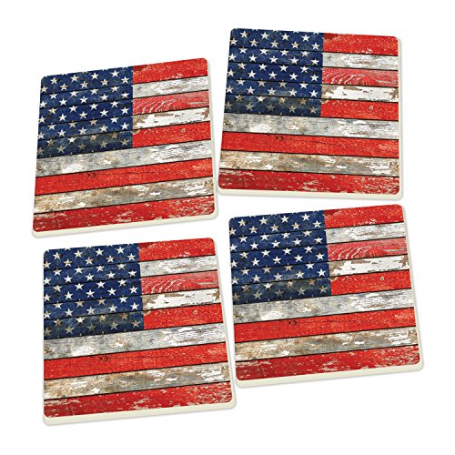 American Flag Distressed Wood Look Set of 4 Ceramic Coaster Pack