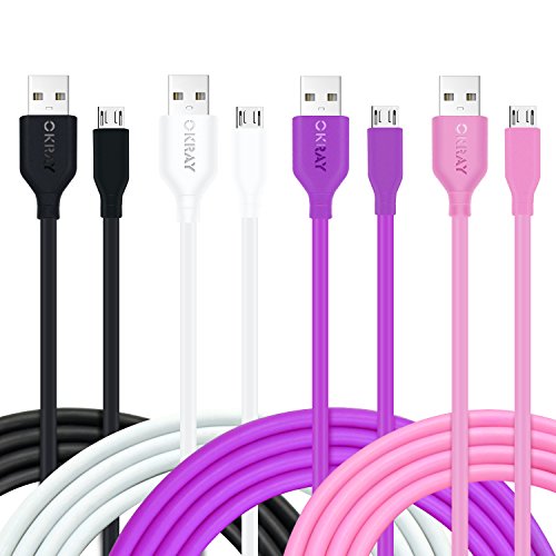 OKRAY 4 Pack Premium 6ft 2M PVC High speed Micro USB 2.0 A Male to Micro B Sync and Charge Cable Charging Cord for Android, Samsung, HTC, Motorola, Sony, Nokia, Power bank (Black White Purple Pink)