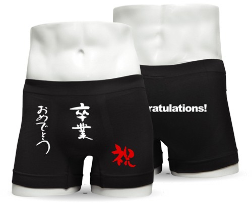 ご卒業のお祝いにメッセージの入ったボクサーパンツはいかが?ヒップにはCongratulations!フロントには卒業おめでとうの文字が入っています。息子さんに贈ってみてはいかが?きっと大切に穿いてくれますよ。