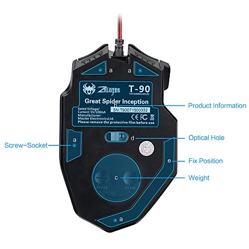 Humanized Design. Built-in memory storage chip, this wired gaming mouse has memory function while powered off and even permanent memory. Come with 8 weights, you can adjust it with your own habit. Ergonomic design ensures comfortable fit including fingertips and claw style grip.