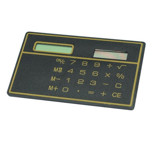 -. Binding : Electronics -. Brand : Prospas -. EAN : 0881995333119 -. Feature : 100% brand new and high quality / Ultra thin, portable. / With the shape modern design, easy to carry and practical to use. / Solar powered, no battery needed. / Energy saving and environment friendly. -. Label : Prospas -. Manufacturer : Prospas -. Model : 15631 -. MPN : 15631 -. PartNumber : 15631 -. ProductGroup : CE -. ProductTypeName : OFFICE_ELECTRONICS -. Publisher : Prospas -. Studio : Prospas -. Title : Mini Slim Credit Card Solar Power Pocket Calculator - Random Color -. UPC : 881995333119