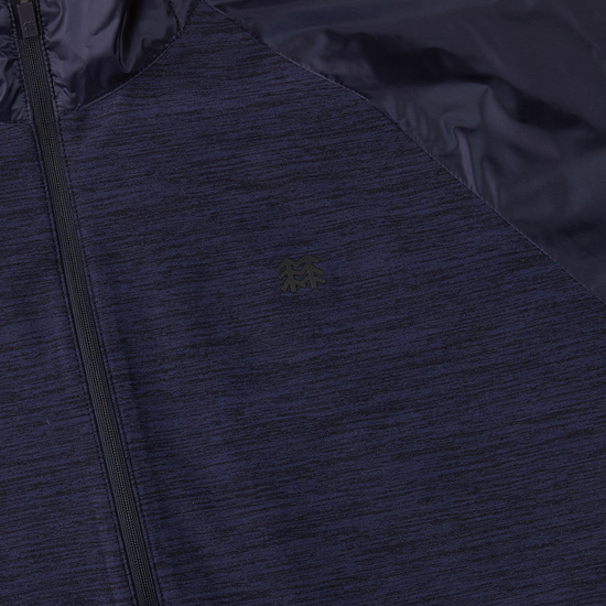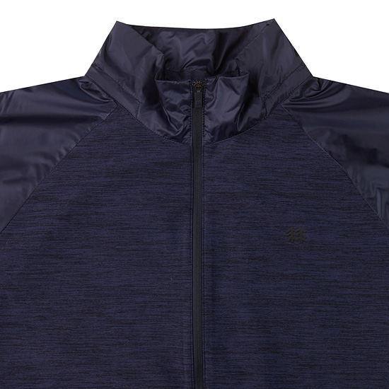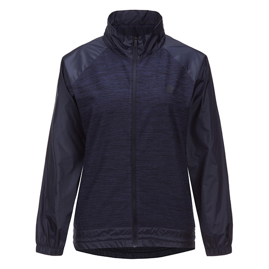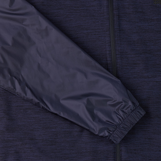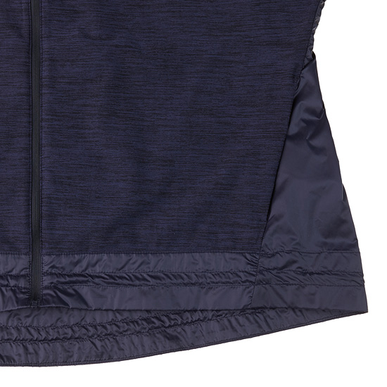 - 저지소재와 우븐소재를 믹스한 하이브리드 스타일의 여성 풀집업 티셔츠.