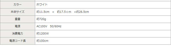 ●コンパクト設計で場所を取らない。約11.5cm×17.5cm×26.5cmのコンパクト設計。卓上でも場所を取りません。