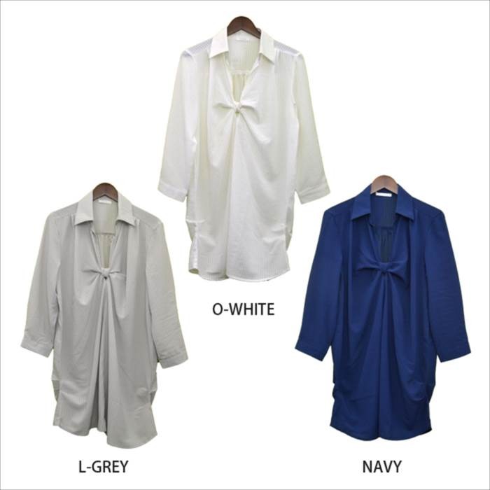 ●商品の特徴・やや透け感のある生地が大人気なシアチェック生地のシャツワンピースです。・シンプルかつオシャレな雰囲気なので、カジュアルになりすぎず幅広い年齢層の方に大人気です♪・着回ししやすい定番のカラー展開なので長く着れそうなデザインです。・胸元はリボンのようなデザインになっていて、細部にまでこだわっていてシンプルすぎずオシャレなデティールです。●サイズ展開 【フリー】 着丈83cm バスト69~77cm (画像モデル身長:159cm)※平均での採寸となりますので、多少の誤差が生じる場合がございます。ご了承くださいませ。●カラー展開 ホワイト グレー ネイビー ※画像をご参照下さい。●商品詳細 【素材】:ポリエステル100% 【厚み】:やや薄め 【裏地】:なし 【シルエット】:ゆったり 【伸縮性】:なし 【付属品】:なし (コーディネート使用の衣類、アクセサリー等は付属しません)20代 30代 40代 50代 人気 レディースファッション 大きいサイズ