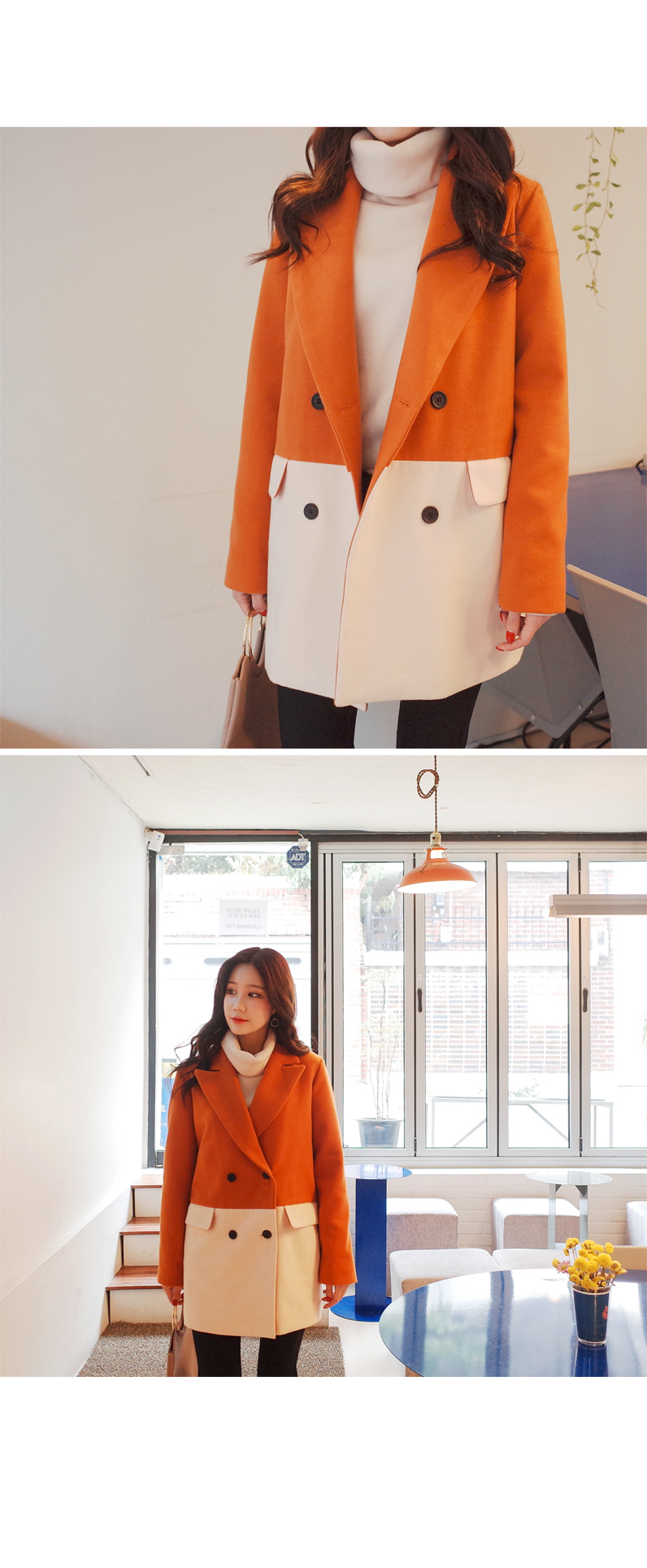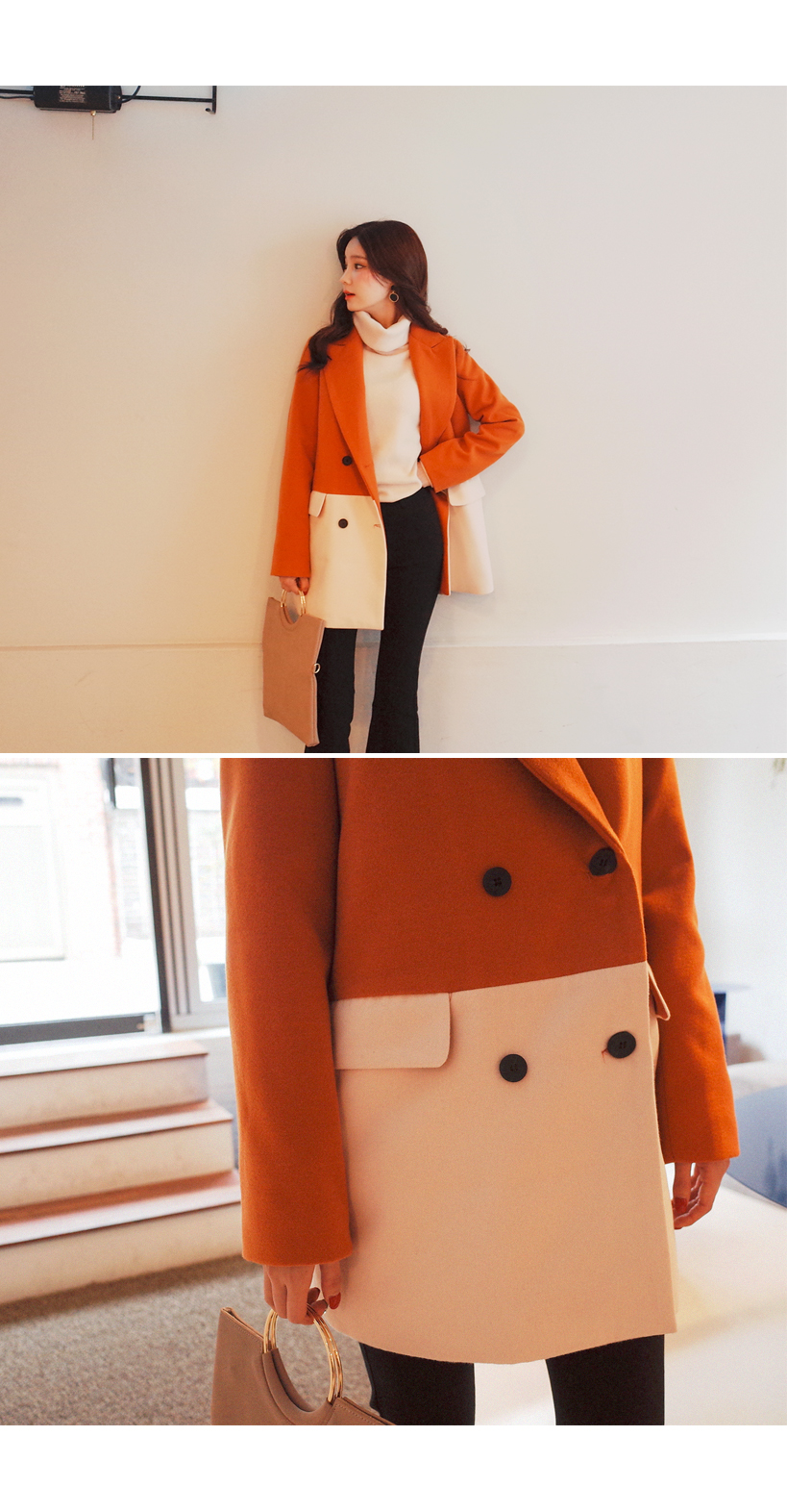 배색 스타일로 고급스러운 코트입니다