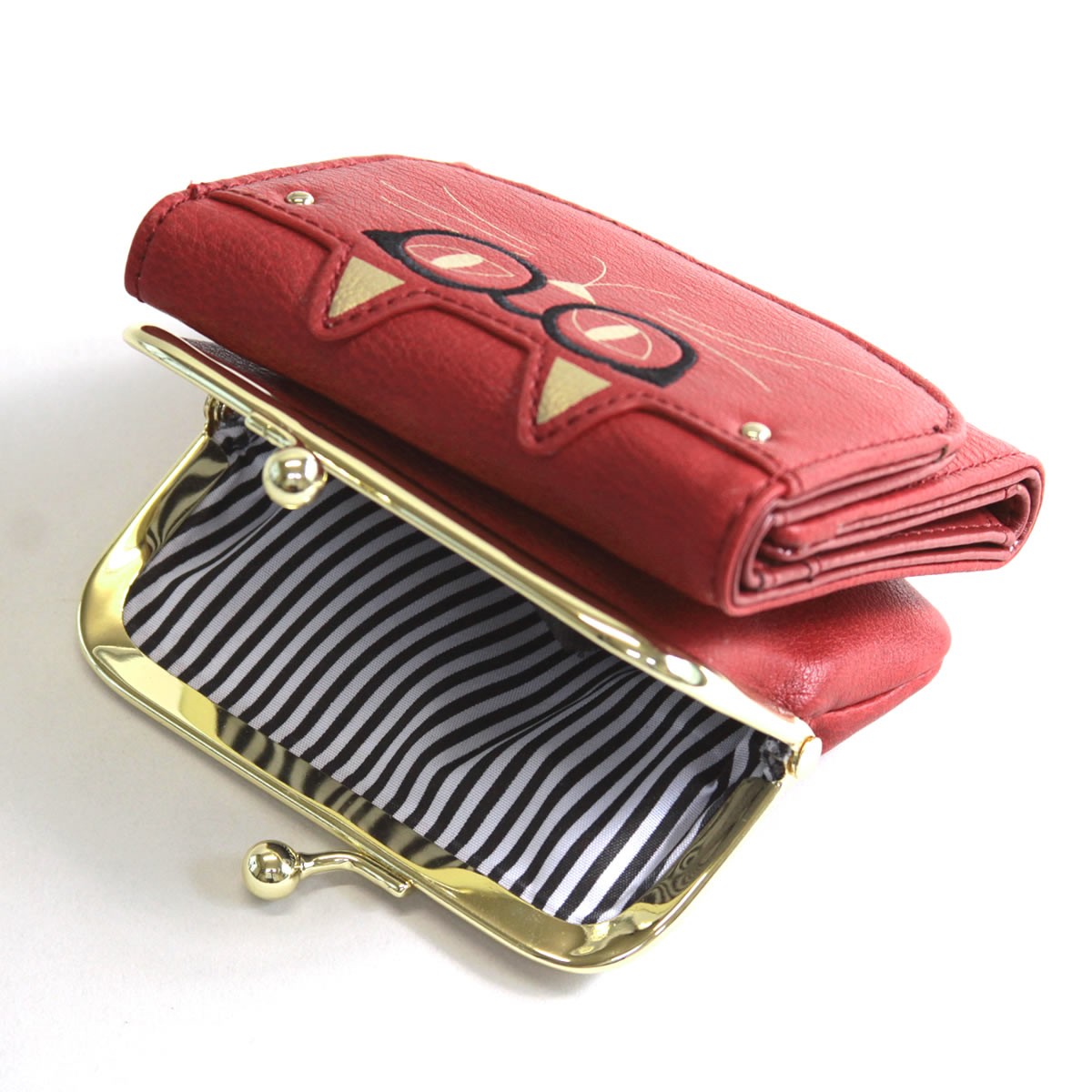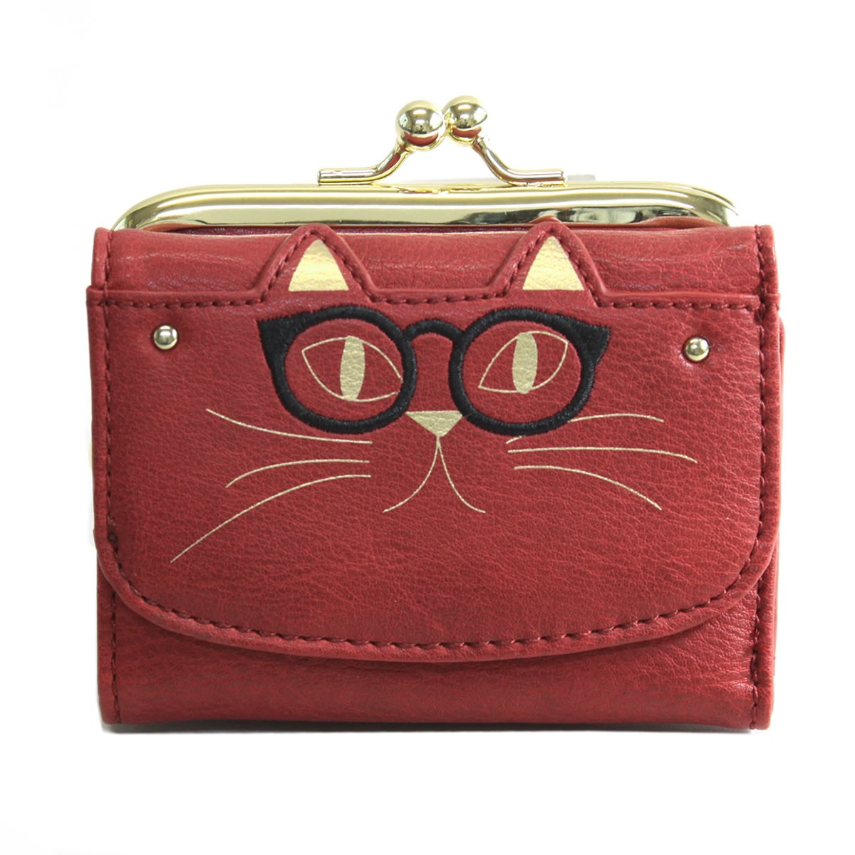 | 商品名 | 【anello 】アネロ ZU-M0202-RE おすましメガネ猫 ジョセフィーヌ がま口小銭入れ付 三つ折り財布 |