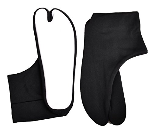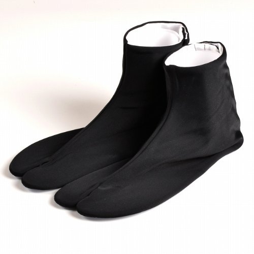 This is Japanese traditional Tabi socks for indoor use. 5 tin tab closures on the ankle. Up to US shoes size 9. Outside: Nyion 100%. Inside: Cotton 100%. Sole: Polyester 100%. Soft and comfortable. Use with Zori sandals. Stretch type.