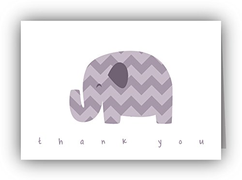 Purple Chevron Elephant Baby Thank You Cards - 24 Cards & Envelopes
