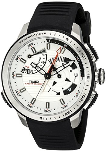 This analog men's watch comes with a black silicone strap and gunmetal case. It also features a chronograph with 60 minute capacity, yacht-racing mode, countdowntimer with 1/3/5 minute mode, and perfect date (perpetual calendar).