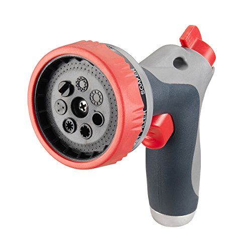 -. Feature : The RAINWAVE push button multi pattern nozzle / This item is also equipped with an easy to use water flow lever / Constructed of robust metal