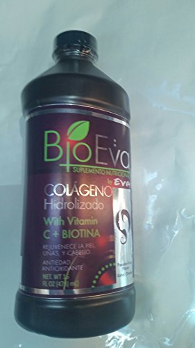 Bio Eva Supplement Nutritional Collagen hydrolyzed With Vitamin C And Biotin Liquid Nails Hair Skin Anti-Age 16 Floz