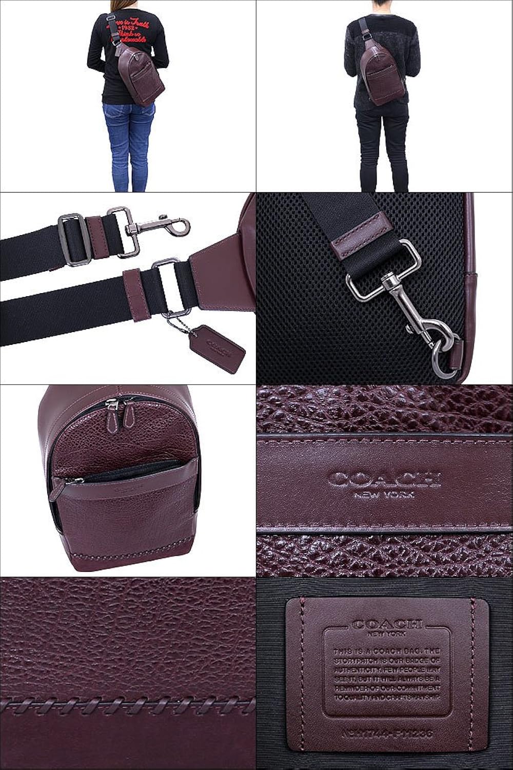 【サイズ】横幅:20cm 高さ:39cm マチ:7cm ショルダー:60cm〜99cm 重さ:530g【仕様】間口:ダブルファスナー開閉 正面:ファスナーポケット×1 内部:スナップベルトポケット×1 ショルダーストラップ:片側取り外し可能、長さ調節可能 ●コーチの長財布が入ります【素材】レザー【付属品】なし