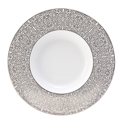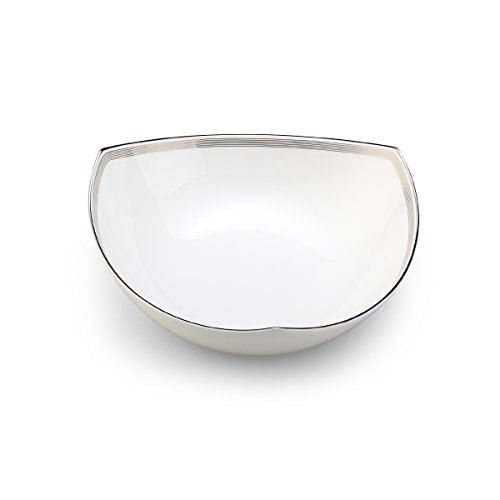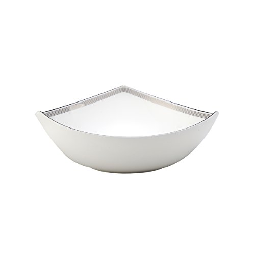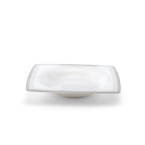Bring modern style to the table with the Mikasa Martina Soup Bowl. This square rim bowl is perfect for serving a hearty soup, as well as salads, pasta, and even ice cream. The bone china construction features geometrical shapes with an intricate line pattern. Platinum line bands create elegant borders around gently rounded corners and swooping edges. Serve breakfast, lunch, dinner, and desserts in this 7-3/4-inch diameter bowl. This product is not dishwasher safe; hand washing is recommended. Not recommended for use in a microwave.Feature