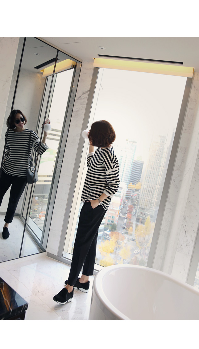 また、本商品はプリンティング(ストライプ)生地で前面/裏/袖の部分を裁断して縫製する方式で