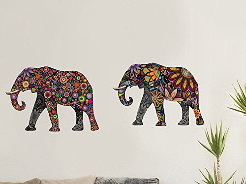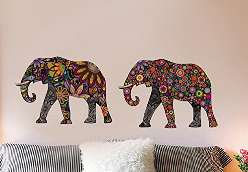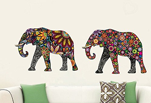Amaonm® Creative Kids Room Wall Decals Removable Cute Cartoon Colorful Animals Sunflower Veins Elephant Wall Stickers Murals Wallpaper for Nursery Room Bedroom Living room TV Background (14"x24")