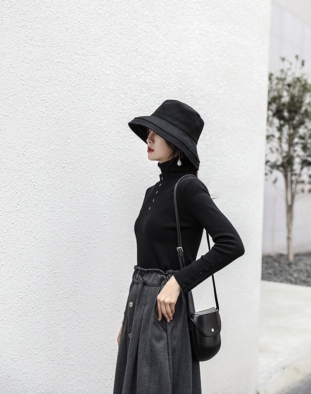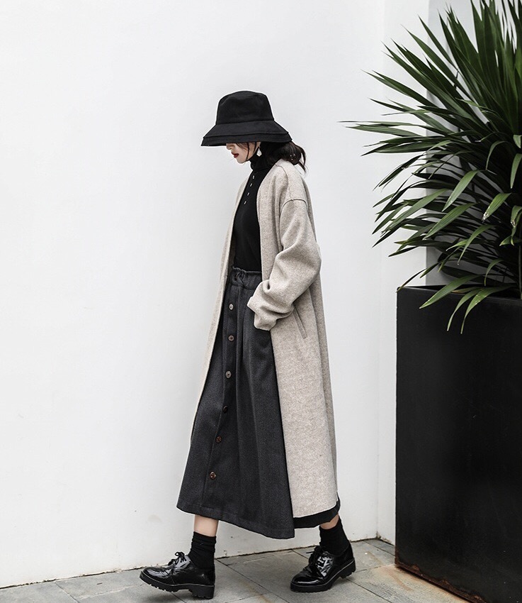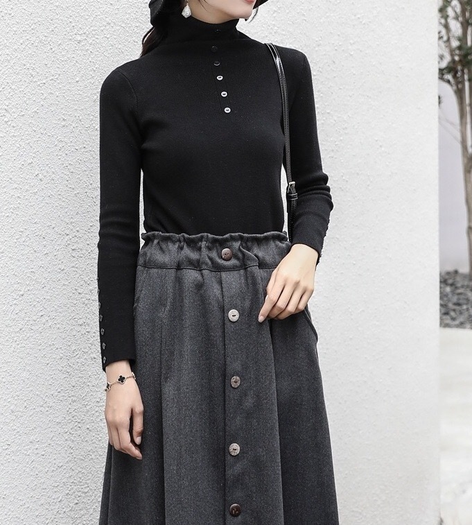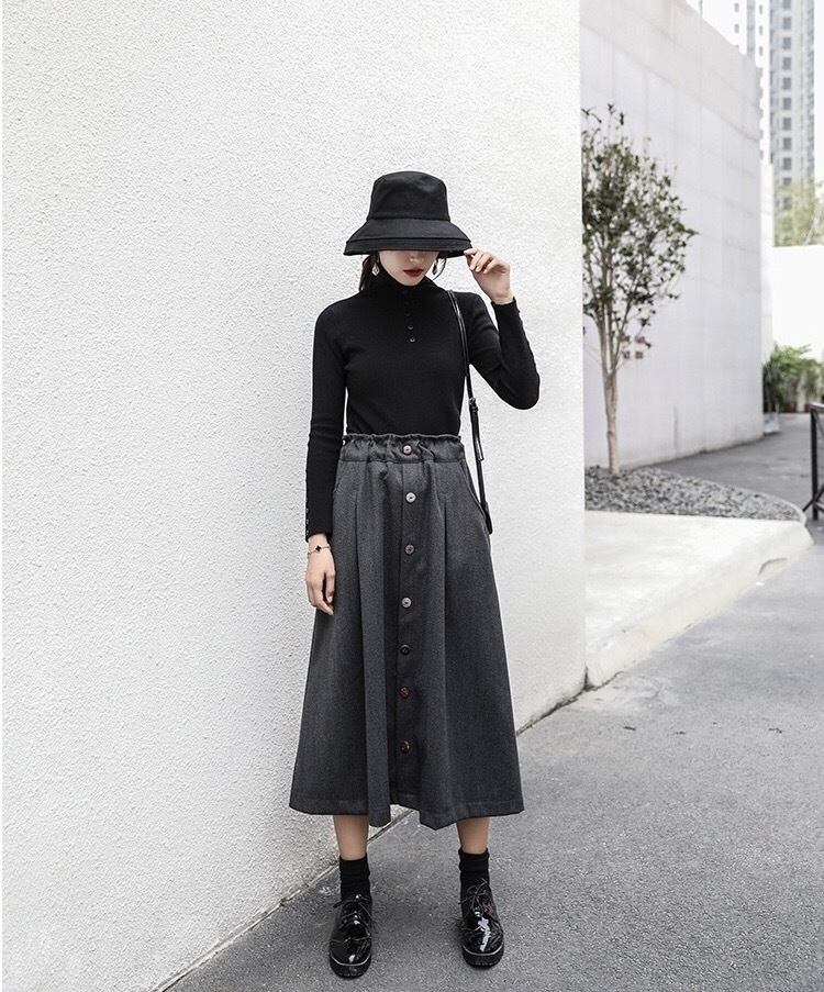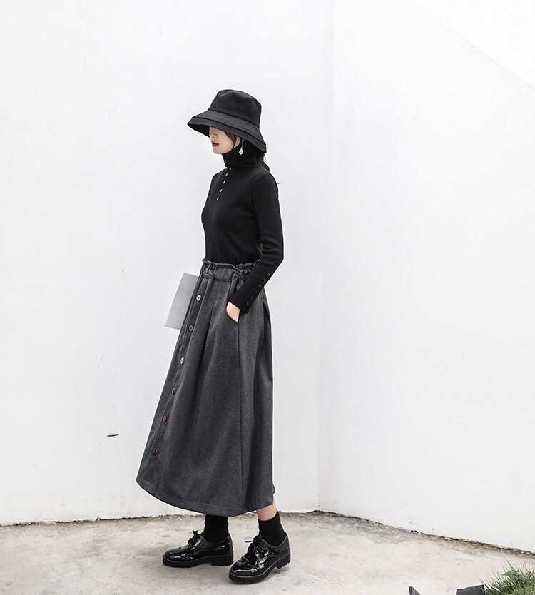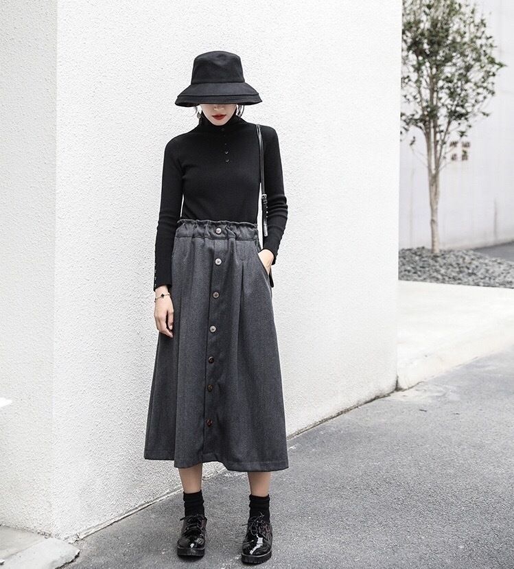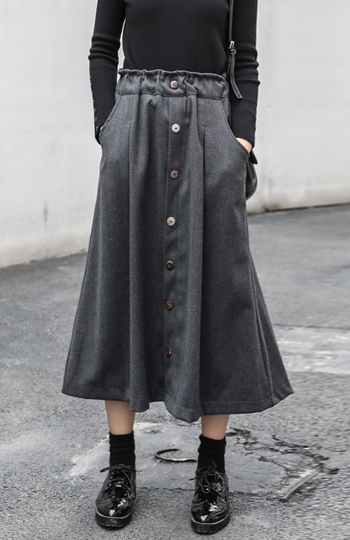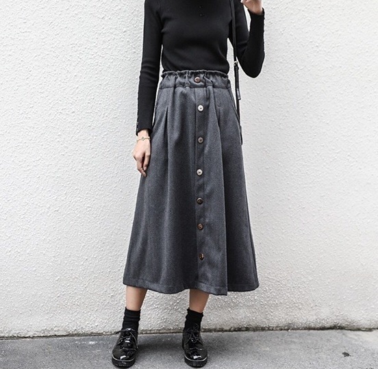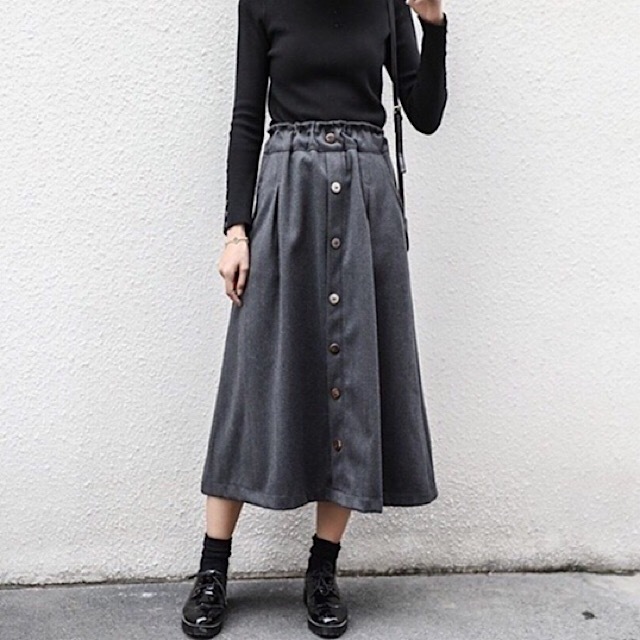 モノトーンがレトロで落ち着いた雰囲気のロング丈スカートです。