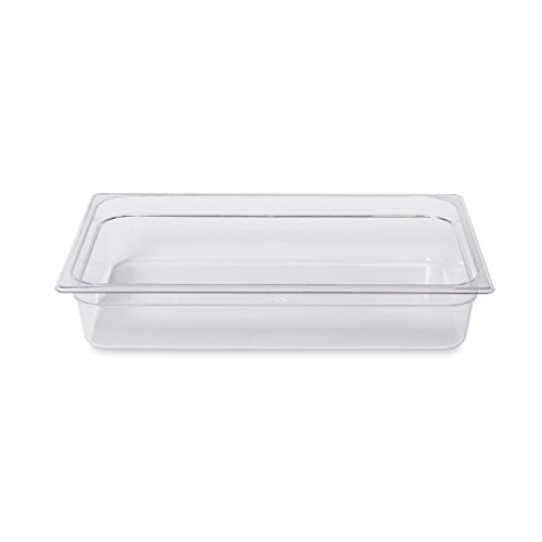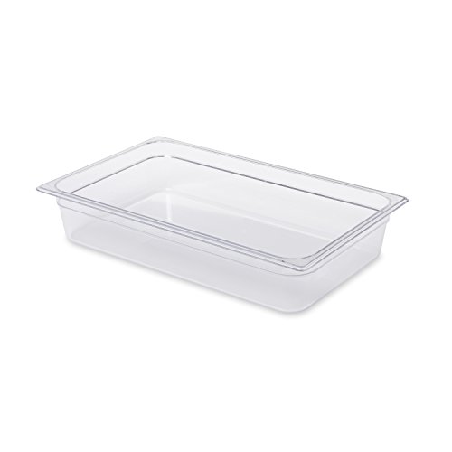 The Rubbermaid Commercial Products FG131P00CLR Full Size 13-3/4-Quart. Cold Food Pan is designed to store and serve cold food items. It features a non-stick surface for better food release and easy cleaning. It is made of FDA Compliant materials and designed for use in temperatures of -40-Degree F to 212-Degree F. The cold food storage product is NSF certified and commercial dishwasher safe.