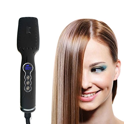 Hair Straightener Brush,Aibay Ceramic Heating Straightening Irons Brush With LCD Display Anti Static Anti-Scald Hair Massage Straightening Irons (Black)