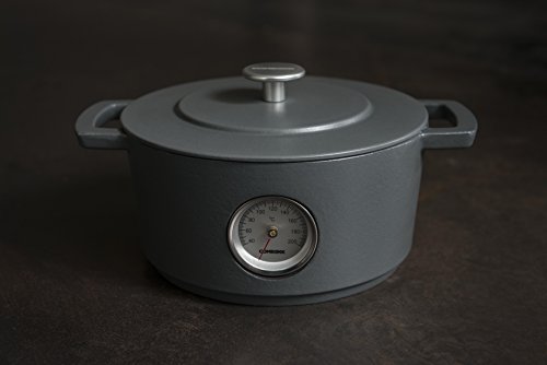 Combekk Homeware is quality cookware made in Holland. Fully enameled cast iron products are made entirely from recycled materials with a tough and functional design. The special forge and right mix of materials combine to product pans of the highest quality. What makes Combekk unique? 1. Industry first-the one and only dutch oven with built-in precision thermometer. Provides precise control for all styles of cooking 2. Perfect heat distribution-even distribution with no hot spots 3. Ideal for stewing-because the lid completely seals the pan 4. Natural flavour and preservation of vitamins- Combekk pans cook food beautifully on high heat 5. Single layer enamel-durable, prevents chipping and makes pan easy to clean. 6. Suitable for all heat sources-gas, electric, ceramic and induction 7. Energy efficient-Combekk pans retain their heat for a long time 8. Made in Holland 9. 40 Year Guarantee† Combekk provides a 40 year guarantee on all of the cast iron parts. Damage from it being dropped, banged, incorrect use or incorrect cleaning methods are excluded from the guarantee, as is natural wear and tear, consequential and incidental loss and damages. Your receipt is your proof of guarantee. Control to cook the way you want! • • • • • • • Poaching - 149 °F / 65 °C Heating - 167 °F / 75 °C Stewing - 176 °F / 80 °C Steaming/Smoking/Boiling - 212 °F / 100 °C Frying - 230 °F / 110 °C Deep Frying - 320 °F / 160 °C Baking - as per recipeFeature