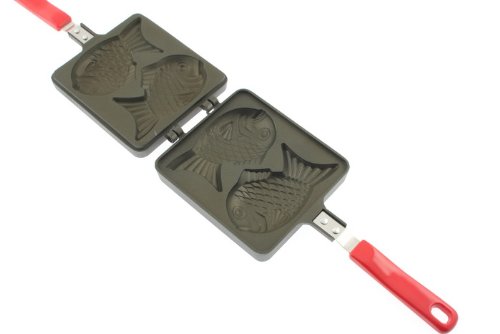 Taiyaki is a Japanese confection of cooked pancake batter filled with red bean paste. The mold for the treat is shaped in the form of a fish. The fish, resembling a sea bream which in Japanese is named "tai", is associated with good luck. Although a red bean paste called azuki is the traditional filling for taiyaki, other non-traditional fillings such as cheese, chocolate or custard have become popular.Feature