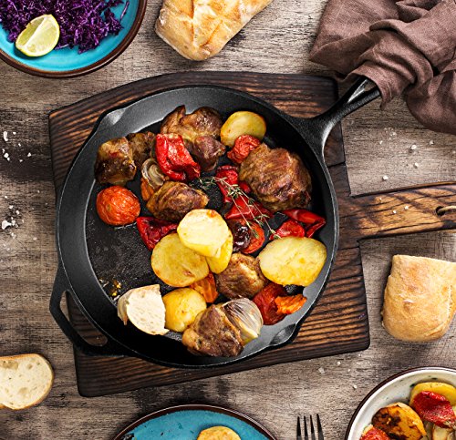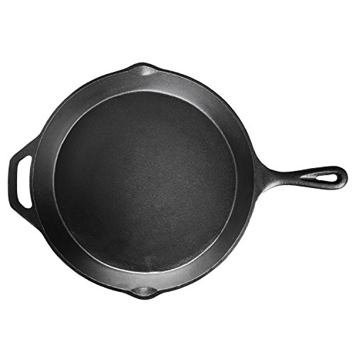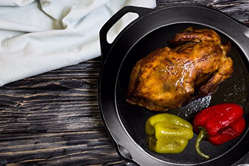 Bruntmor's new pre-seasoned cast iron skillet will suit all of your cooking needs, whether indoors or outdoors. This 12 inch skillet can cook anything with its superior heat retention which also means your food will cook evenly. Its durability means it will last a lifetime. Cast iron is super versatile which means you can do everything from fry to bake to braise to sear in this skillet. You can even take it on camping trips! Fits All Kitchen And Camping Needs Cast iron retains heat very well so it will cook your food evenly. You won't need as much oil as a regular pan which saves calories as well as purchasing oil. Your meals will be fortified with iron due to the nature of the pan. Transfers safely from stove to oven, be sure to use oven mitts! Wash by hand with hot water and sponge and dry thoroughly after use. Do not put in dishwasher or use heavy dish soap as this will strip the seasoning. Mild soapy water is okay to use for the first wash. This will be a kitchen staple for years to come!Feature