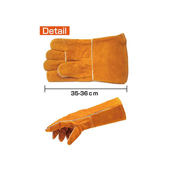 손목과 팔꿈치의 중간당까지 확실히 커버 하고 있어 안심 할 수 있는 길이입니다.언제나 되 마음에 두는 팔꿈치의 근처도 여유의 커버입니다.손바닥 측에 있는 보강이 실용성과 디자인성을 겸하고 있고 사용하기 쉬움을 향상시킵니다.불의 취급 시나 고온이 되는 것을 손을 대는 시 등 화상의 위험으로부터 확실히 지킵니다.스웨이드조의 가죽제 그래서 얼룩이 있는 경우가 있지만 사용에는 문제 없습니다.