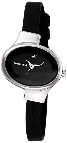 Fastrack Women's Fashion-Casual Analog Watch-Quartz Mineral Black Dial -Black Leather Strap Watch