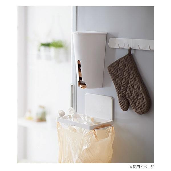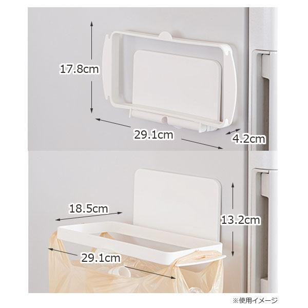 | 冷蔵庫のサイドなどに取り付けて、食品トレーやペットボトル・牛乳パック・空き缶などの資源ゴミを分別。スーパーのポリ袋が使えるアイデアホルダーです。使わないときはたたんでコンパクトに。ポリ袋も簡単に装着でき、取り外しもスムーズに行えます。 |