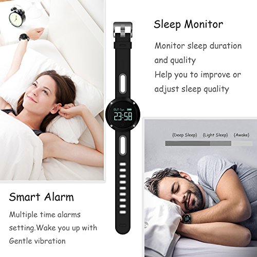 【Fitness Tracking】: Arvin fitness tracker can count your steps, walking distance, exercising time, sleep quality and motivate you to be more active to achieve your goals setting such as steps goal and sleep hours(Automatically monitoring from 18:00-8:00,record shallow/deep and total sleep time)