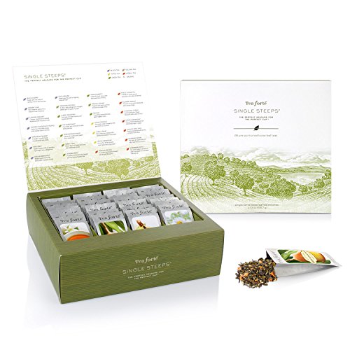 Tea Forté SINGLE STEEPS Loose Tea Sampler TEA CHEST, 28 Different Single Serve Pouches - Black Tea, Green Tea, White Tea, Herbal Tea