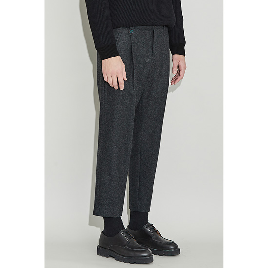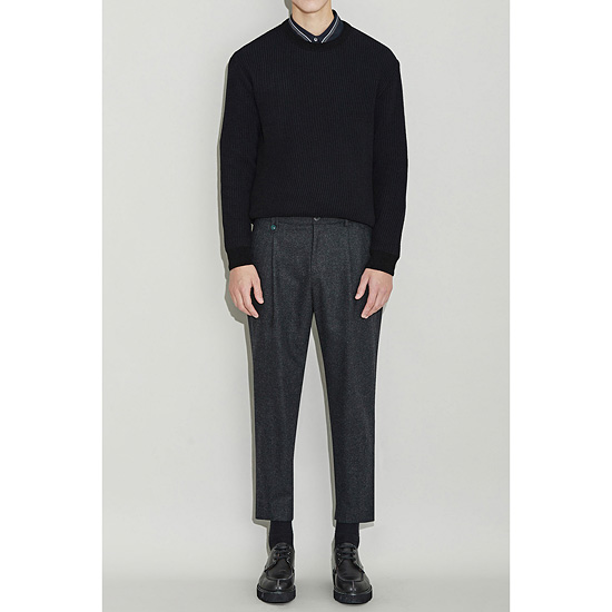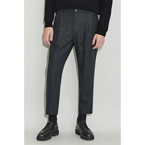 - 멜란지 텍스쳐가 느껴지는 남성 본딩 배기 팬츠.