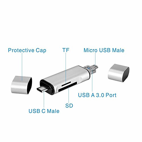 About The Product USB A & Micro USB & USB C Multiple Card Reader. Two slots for TF/SD memory card, a Type C male port for your latest USB C devices. A Micro USB port is for the Micro USB OTG supported smartphones. USB A 3.0 is for all devices with USB port.