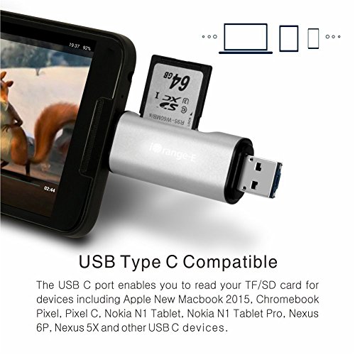 USB Type C Compatible, read your TF or SD card by connect to the latest USB C devices including Apple New Macbook 2015, Chromebook Pixel, Pixel C, Nokia N1 Tablet, Nokia N1 Tablet Pro and other USB C supported devices.