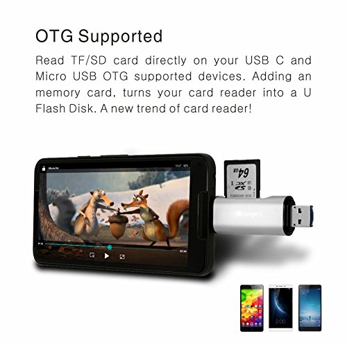 OTG supported, No drives required. Read TF/SD card directly on your USB C and Micro USB OTG supported devices. Adding an memory card, turns your card reader into a U Flash Disk.
