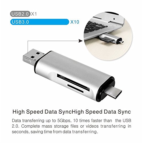 3 in 1 Multiple universal card reader. Portable and light design housing with premium aluminum, easy and convenient for carrying in your laptop bag. Perfect matching kits for your new laptop, USB C devices and more.