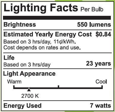 Energy Saving without the Sacrifice Bioluz LED Energy Saving Bulbs turn on instantly just like an incandescent bulb, while saving you a substantial amount of money on your electricity bill. For example, when used 3 hours a day 365 days a year, our LED lamps will last an unprecedented 23 years! And the best part: they use $.84 per year in energy! LED Light Lamp Features Specifications ? Highest Power LED per Watt ? Instant on at Full Brightness ? Dimmable ? 110 Degree LED Beam Angle ? Mercury Free - Environmentally Safe ? 50 Watt Equivalent Using Only 7 watts; 550 Lumens - Brightest in Industry ? 2700K Color Temperature Matches the Color of Existing Incandescent Bulbs (Warm White) ? Lasts Longer - All Aluminum Construction Massive Heat Sink in our LED Light Bases ? 4 Pack, Dimmable, UL Listed, FCC Certified, RoHS Compliant Guaranteed to Lighten Up Your World Bioluz LED is committed to providing you with superior energy saving products that make your life easier more affordable. If for any reason you aren't satisfied with your purchase, simply return your energy saving LED bulbs within 30 days for a full refund!