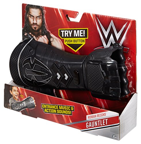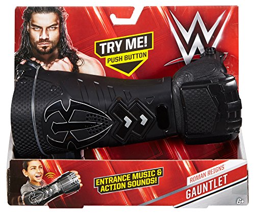 -. Binding : Toy -. Brand : Mattel -. EAN : 0887961411010 -. Feature : Become the new leader of The Roman Empire with the Gauntlet role play accessory inspired by the one Roman Reigns wears as he enters the ring! / Just place the Gauntlet on and when activated by specific motions and sensor technology, action sounds start and the Roman Reigns WWE entrance theme plays just like when he enters the ring! / The action gets even more realistic with punching noises and an explosive power punch to replicate WWE Superstar Roman Reigns! / As one of WWE's most popular Superstars, Roman Reigns is loved by the WWE Universe! / The Gauntlet role play accessory is made of soft materials and contains no sharp points -. IsAdultProduct : 0 -. Label : Mattel - Import (Wire Transfer) -. Manufacturer : Mattel - Import (Wire Transfer) -. Model : DYF77 -. MPN : DYF77 -. PackageQuantity : 1 -. PartNumber : DYF77 -. ProductGroup : Toy -. ProductTypeName : TOYS_AND_GAMES -. Publisher : Mattel - Import (Wire Transfer) -. Studio : Mattel - Import (Wire Transfer) -. Title : WWE Roman Reigns Role Play Gauntlet -. UPC : 887961411010 -. Warranty : 1 year warranty against manufacturer defects
