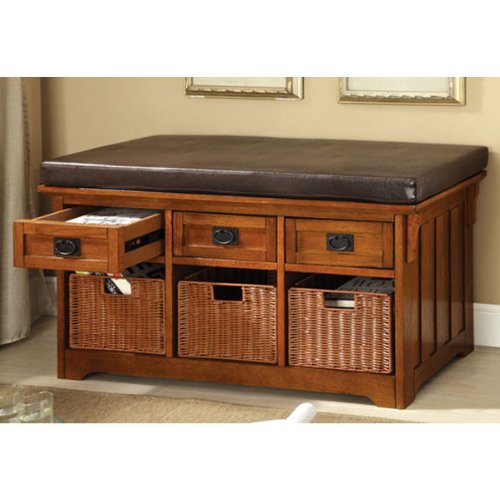 -. Feature : Bench Dimension: 42" W x 15.25" D x 23" H / Weight limit: 200 pounds / Espresso finish leatherette seat cushions included / Finish: Antique oak / Assembly required