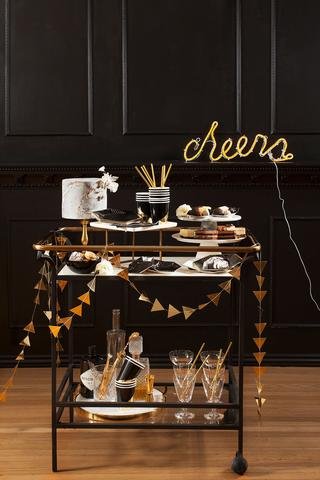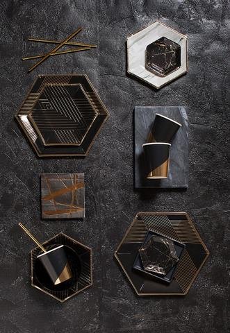 -. Feature : Add edge and artful detail to your tabletop with a splash of gold. / Black, Gold Foil / Paper / Approx. 5" Folded / 20 napkins/pack
