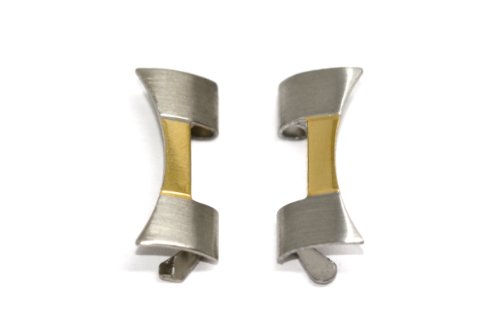 -. Title : 20MM TWO TONE STAINLESS STEEL CURVED WATCH BAND LINK ENDS CONNECTORS - 2PC