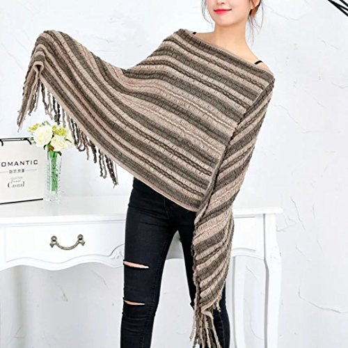 Made of high quality cashmere-like; super soft, comfortable and durable. Fine workmanship, relaxed, comfortable, breathable and sun protection. Stripes and tassels looks so sweet and fashionable, dresses up you more beautiful and full of personality charm. Multipurpose, can be used as travel sun-proof cover-up, beach towel, costume cape shawl to spice up an outfit and decor yourself. Perfect for casual, outdoor, resort, prom, homecoming, party and bridesmaid in autumn and winter.