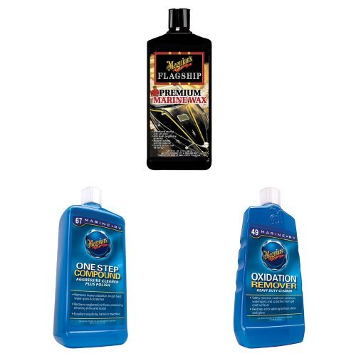 Meguiar's Flagship Premium Marine Wax dramatically enriches color and shine, as well as adding long-lasting protection against wear. It removes light oxidation and dullness while protecting the gel coat from UV damage.