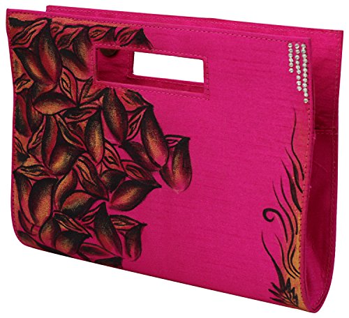In raw silk, this exquisite clutch bag is perfect to bring richness to any attire at parties and special occasions. Hand-painted in bright abstract pattern, this work-of-art is elegantly done by the artisans of India