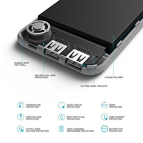 10000 mAh Portable Charger, PURIDEA S2 Series Dual USB Power Bank External Battery Backup Pack for Apple iPhone 4 5 6 Plus Samsung HTC Nokia LG Sony Blackberry, GRAY