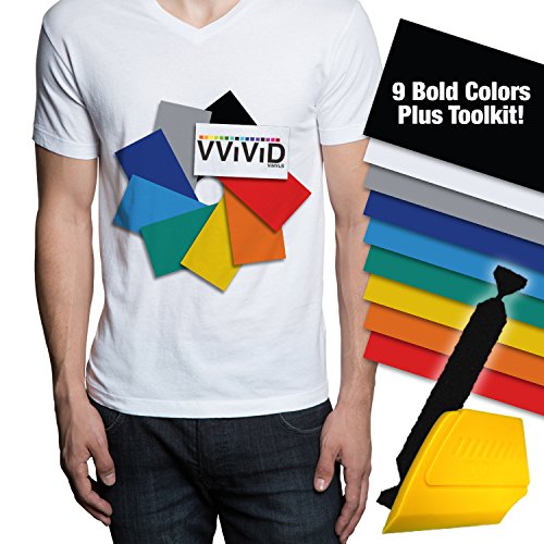 VViViD Heat Transfer Vinyl Multi-Color Bundle 12" x 12" Sheets Including Toolkit (9 color bundle w/ tools)